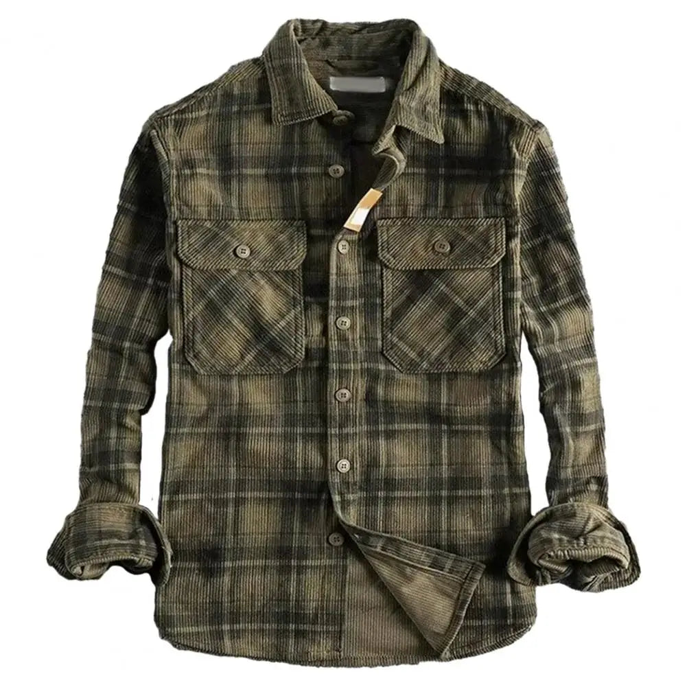 Single-breasted Shirt Plaid Print Men's Cardigan Coat Stylish Mid-length Formal Shirt with Turn-down Collar for Fall