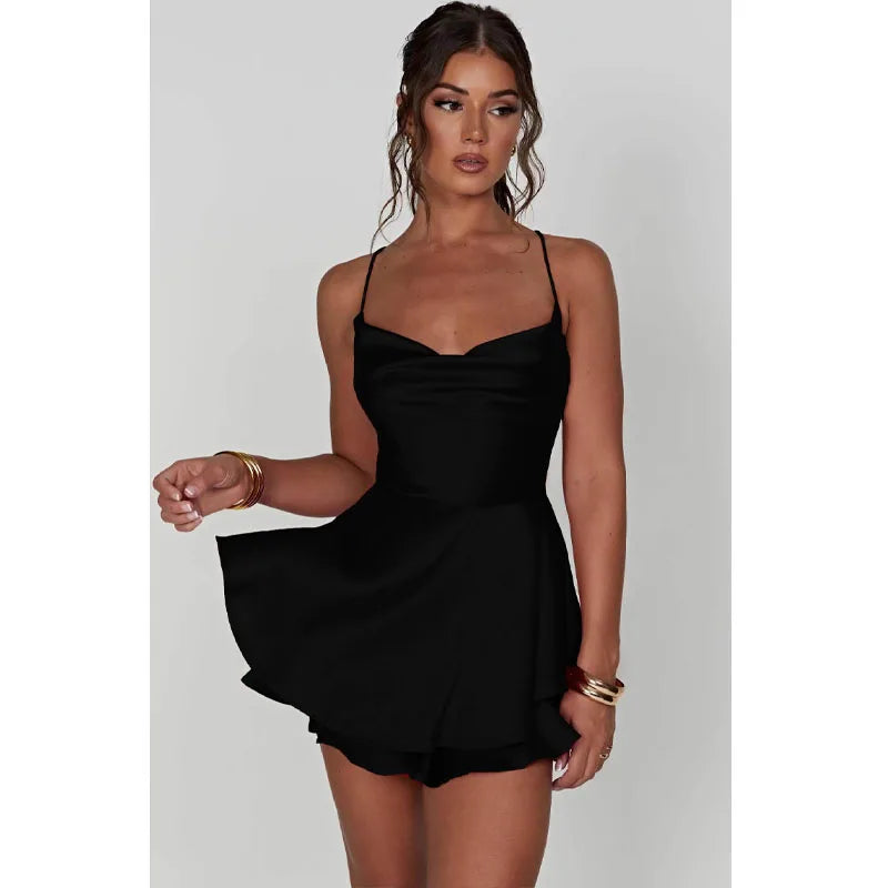 Sling Satin Halter Strap A Pendant Dress Sexy Elegant Lady Style Short Skirt Summer Female Club Party Vestidos