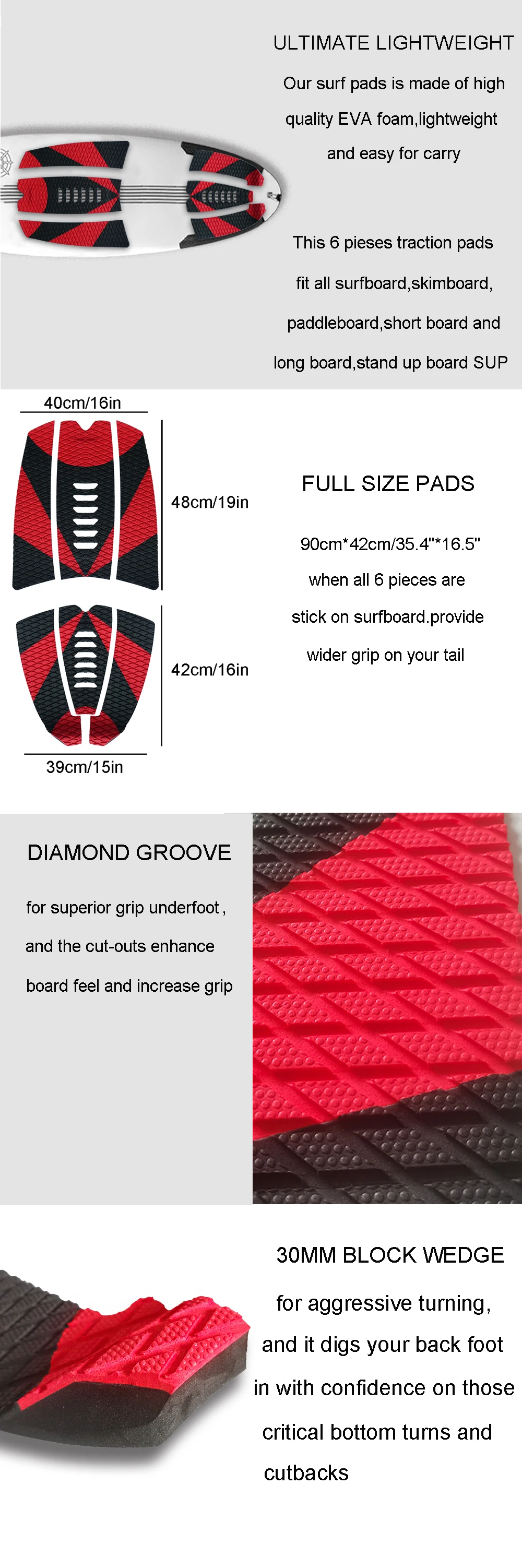 Sup Anti Deck Traction Slip Pad 6 Piece Premium Eva With Grip Surfboard Longboard Paddle Board Back Glue Foot Pads Hot Quality
