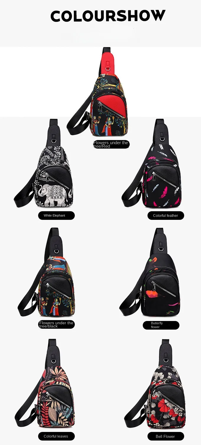 Trendy Ethnic Chest Bag for Women, Multiple Pockets, Large Capacity, Crossbody Bag for Coins, Mobile Phone, Cards, and Wallet