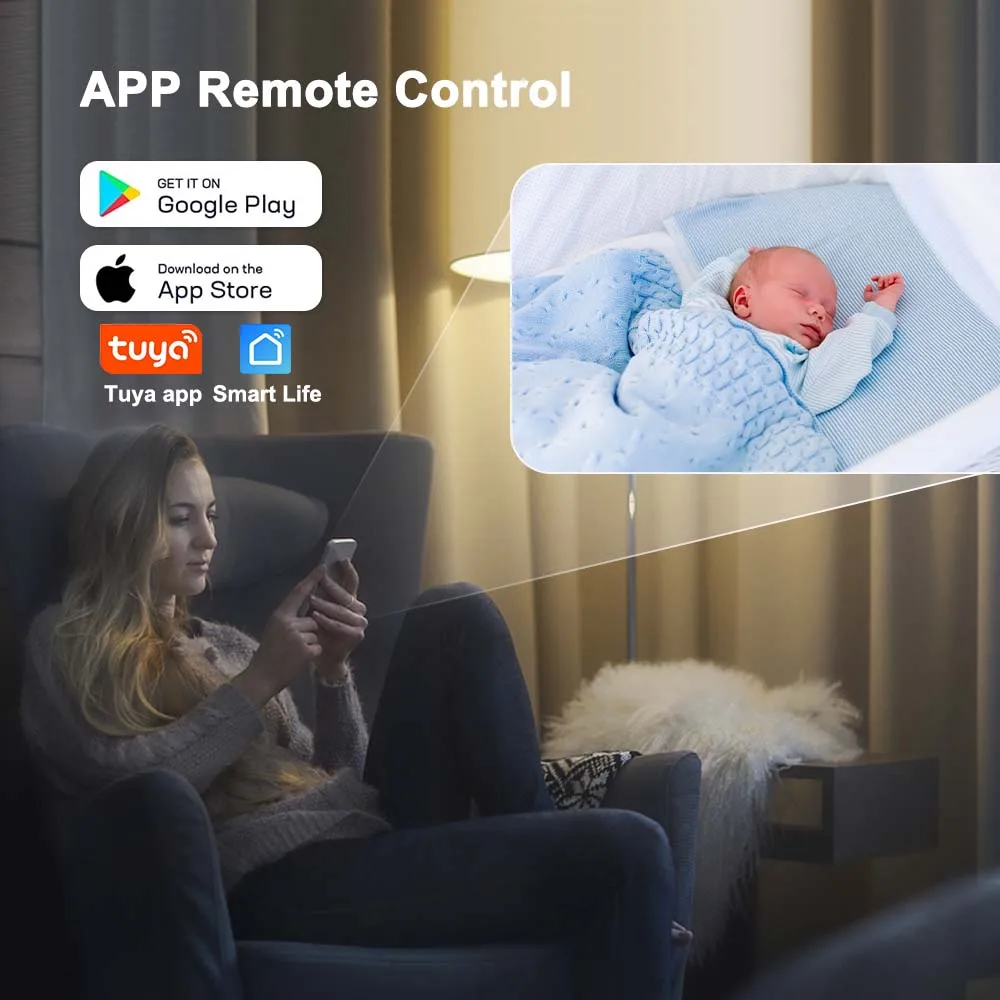 *Download the Tuya Smart app, set up your security system in minutes, slip your finger on screen to make the camera rotate UP/Down/Left/Right ( Horizontal 355°,Vertical 120 °), monitoring anywhere you want.