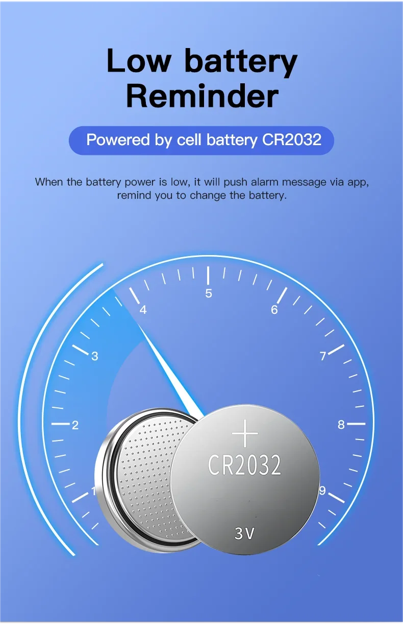 When the battery power is low, it will push alarm message via APP, remind you to change the battery.