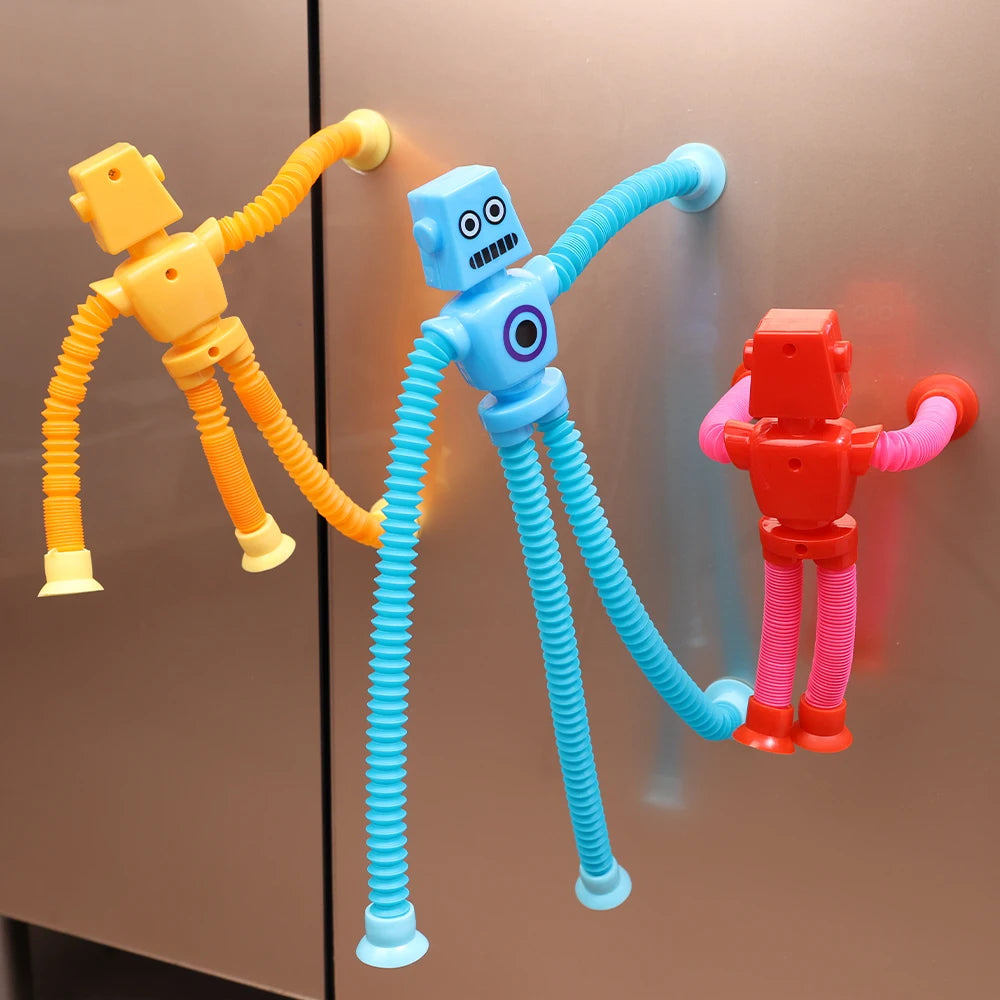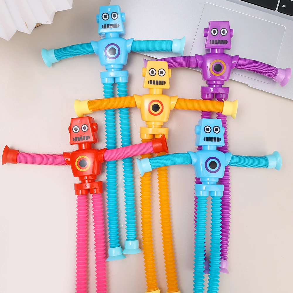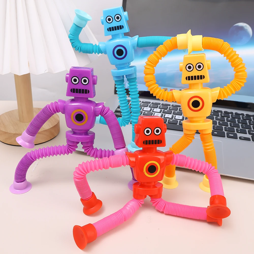 Variable Fun Cartoon Robot Telescopic Tube Toys Kids Puzzle Stretch Suction Cup Robot Toy DIY Telescopic Stress Relief Toys