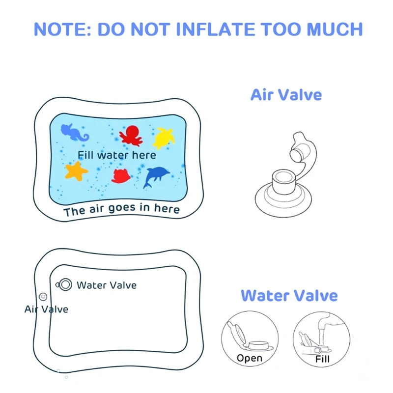 3.EASY TO FILL AND EMPTY: Our easy-to-use water mat offers a hassle-free experience from start to finish. To fill the mat, just pour water into its inner core, ensuring a comfortable and safe surface for your little one. Then, inflate the outer ring with air to provide stability and any water spills. Remember to replace the water every 2 to 3 days to maintain cleanliness and freshness. Our water mat is sure to deliver endless fun and developmental benefits for your baby.
